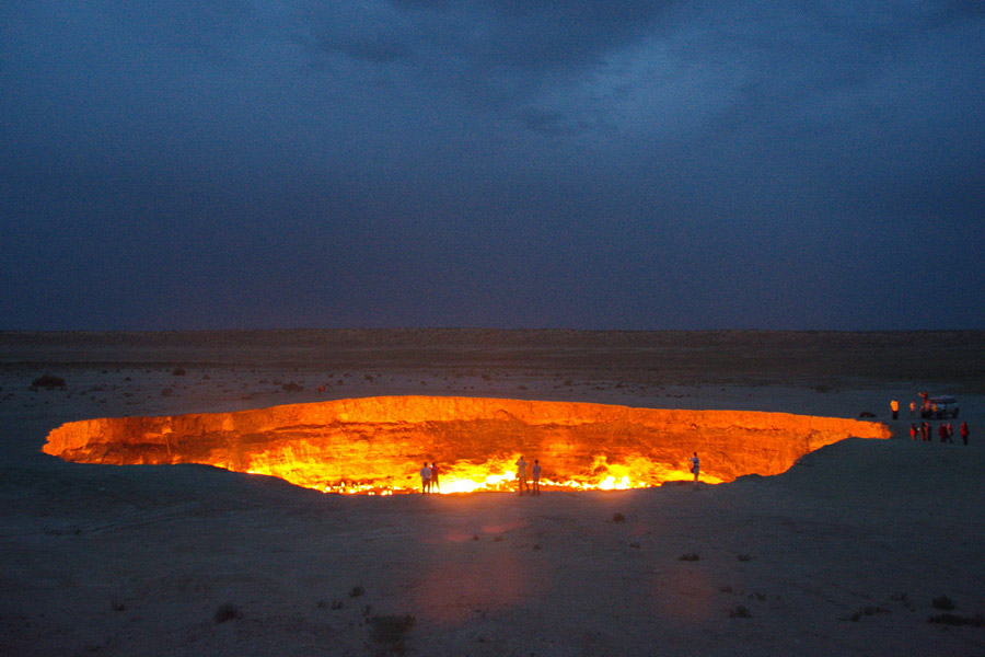 Darvaza (Turkmen: Derweze, from Persian “darvaza” — meaning “gate”) is one of the most surreal and iconic landmarks of Turkmenistan. Known worldwide as the “Door to the Underworld” or the “Gates of Hell,” this blazing gas crater lies deep in the Karakum Desert and has been burning continuously for decades. The crater was created in 1971 when a drilling incident caused the ground to collapse into a massive pocket of natural gas. To prevent hazardous emissions, scientists ignited the gas, expecting it to burn out in a few days — yet the flames have never stopped. Measuring around 70 meters across and 20 meters deep, Darvaza glows with bright flames and intense heat. At night, its fiery light illuminates the desert horizon, creating a dramatic and otherworldly sight that attracts adventurers and travelers from around the globe.